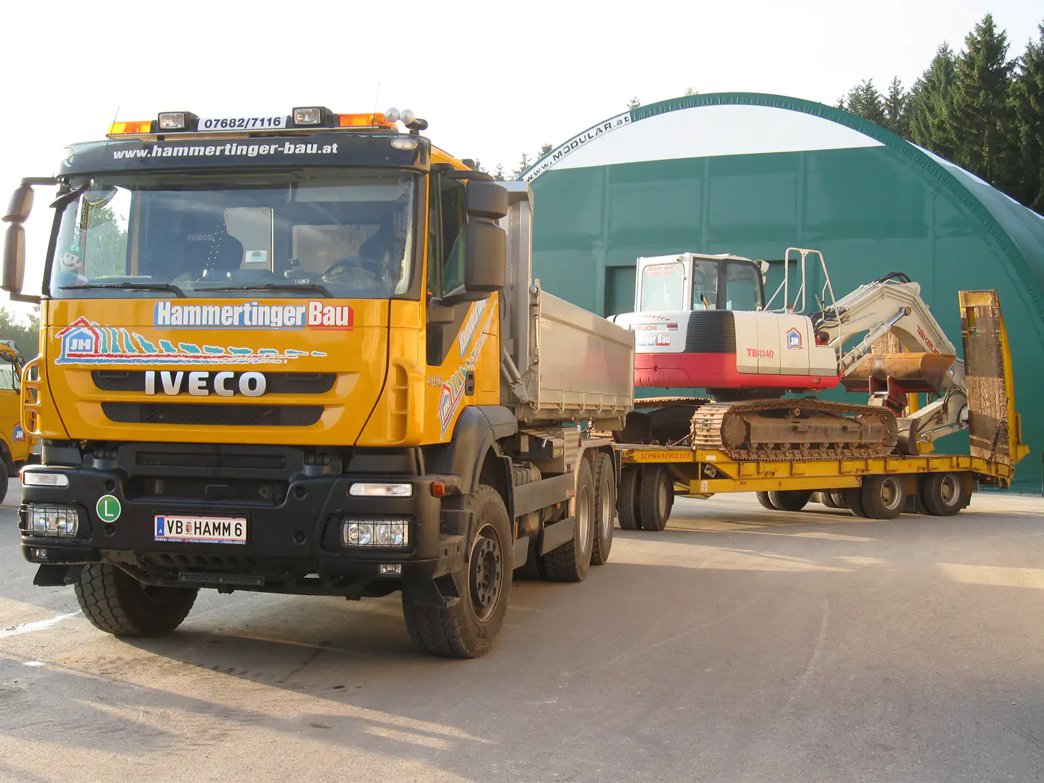 Ob schwere Baumaschine oder empfindliches Kleingerät – wir bringen Ihre Güter sicher ans Ziel. Mit unserem eigenen Fuhrpark bieten wir flexible Transportlösungen für Bau, Gewerbe und Privatkunden.
